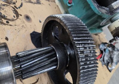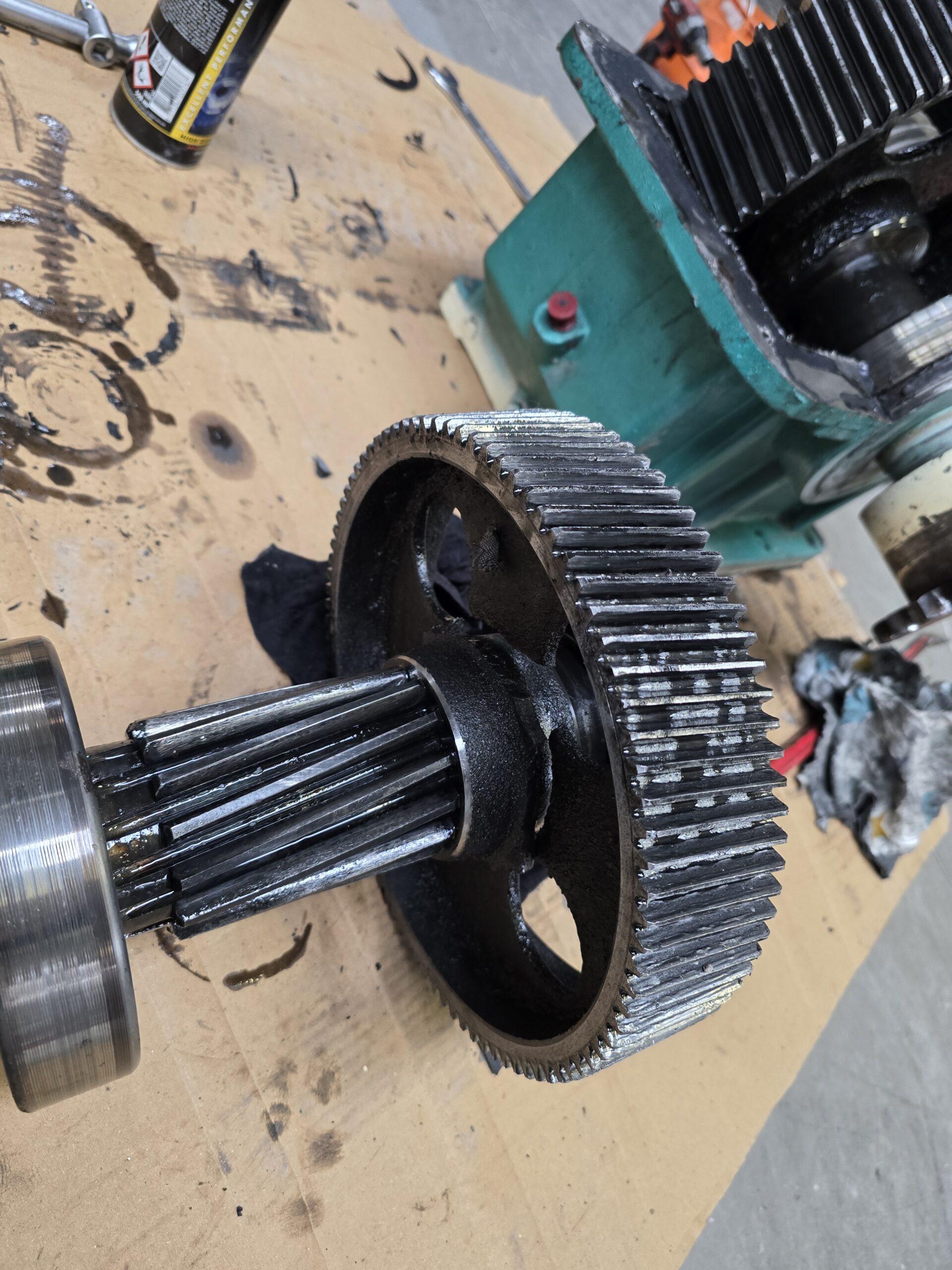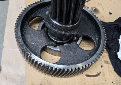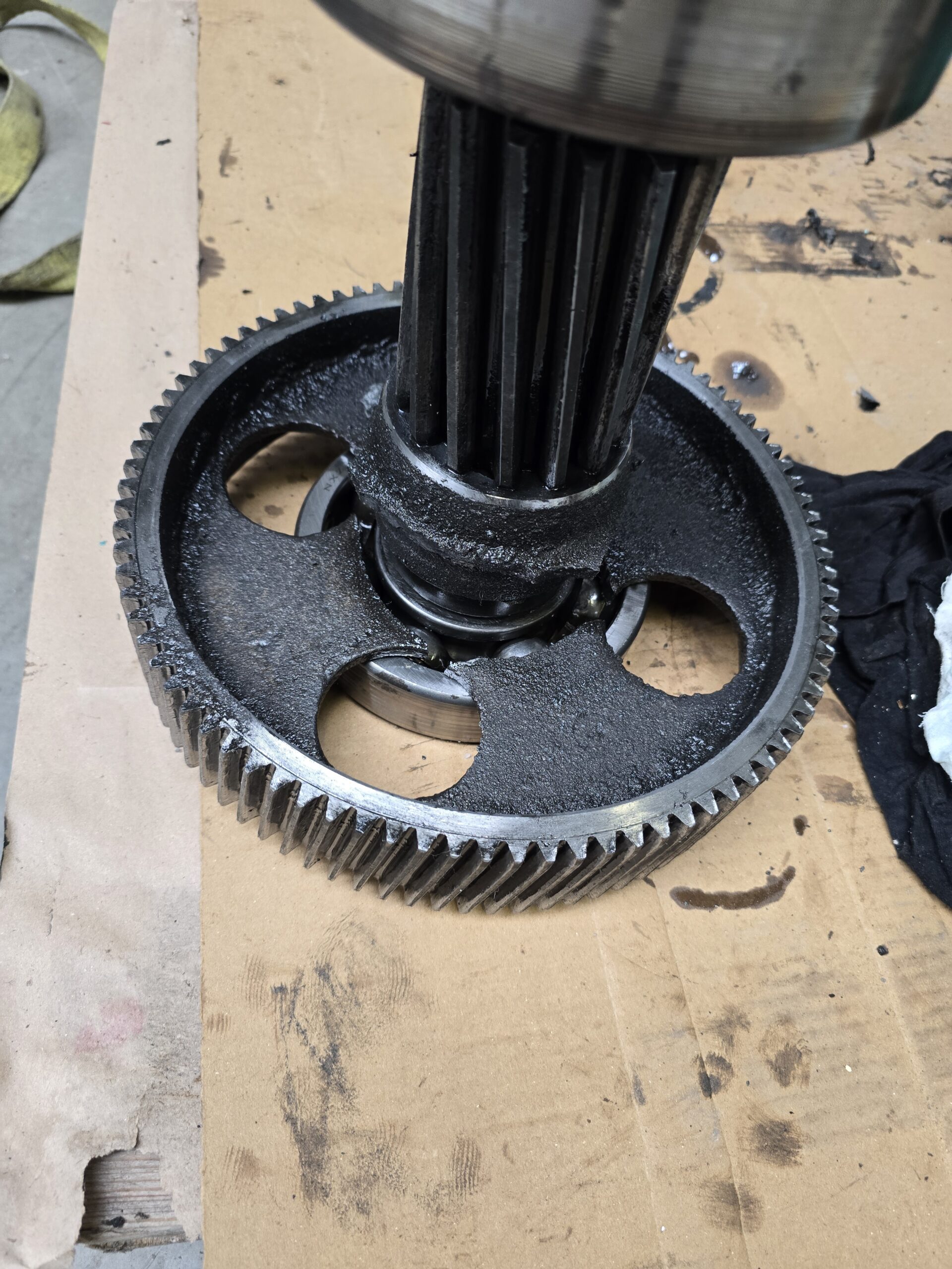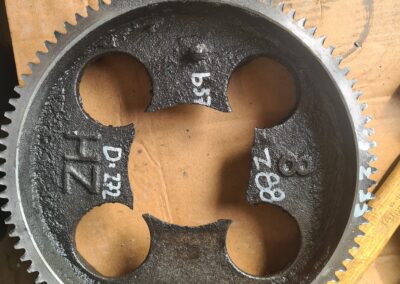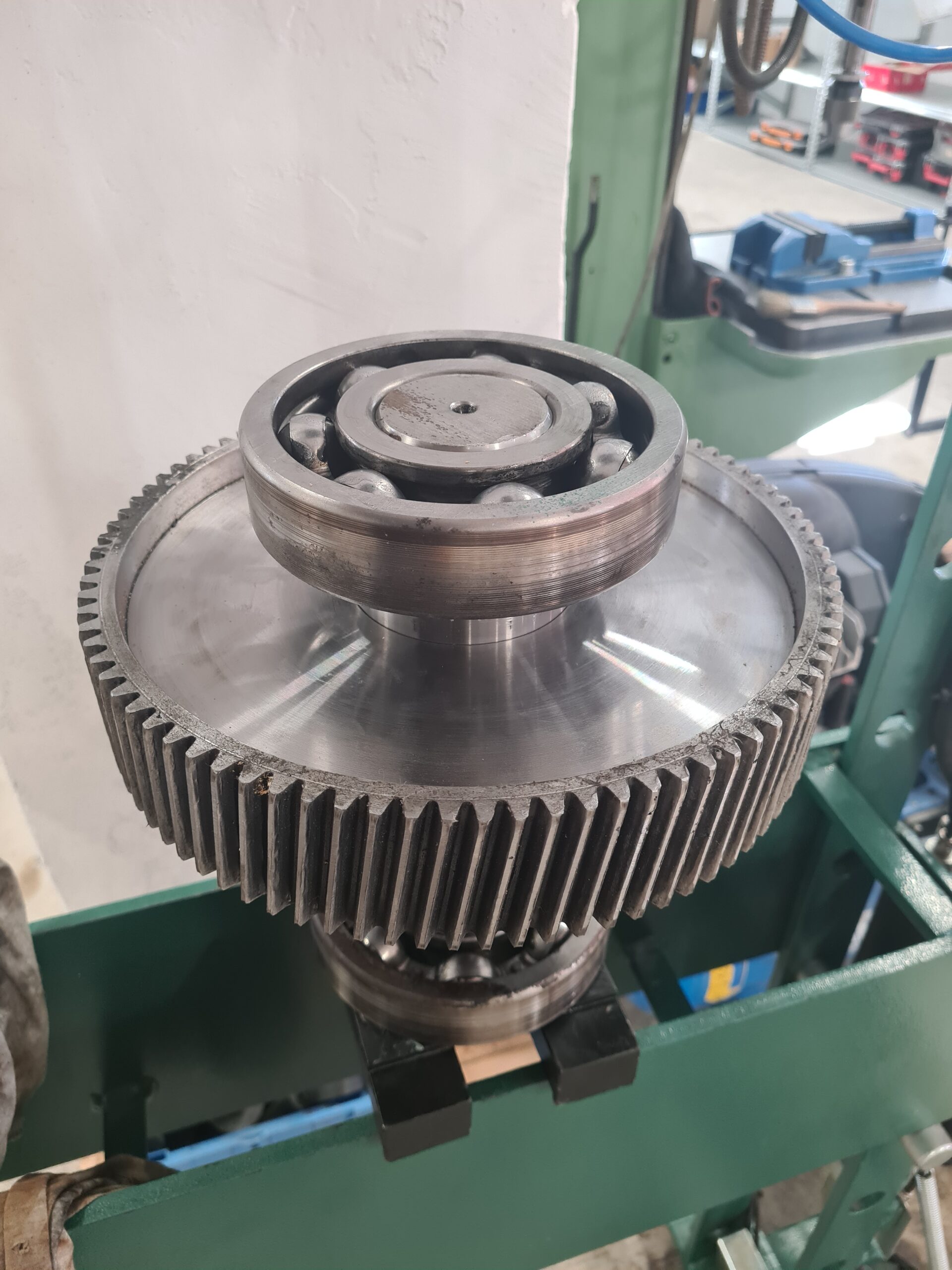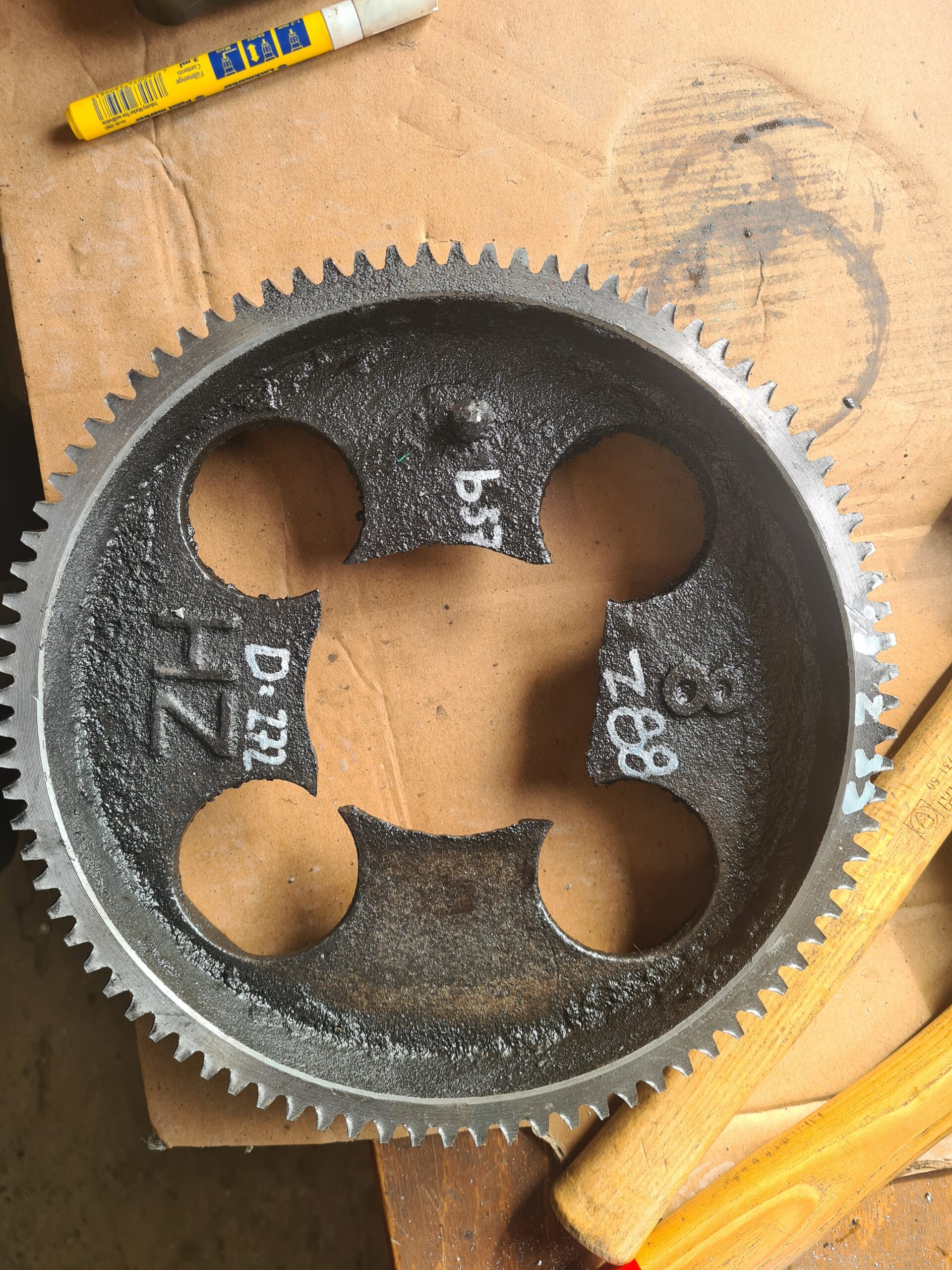 After disassembling and measuring its module we took a chance with welding. After it turned out that it is not possible to weld and it becomes obvious that it is not available as a commercial part, we decided to use the original spur and manufacture a new hub. Hub was glued to spur, and fine cut finally.