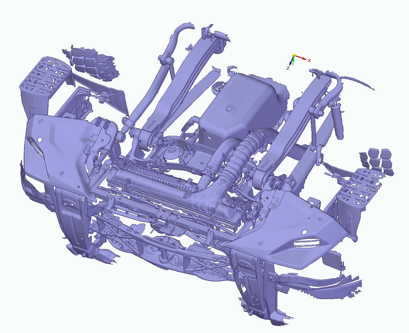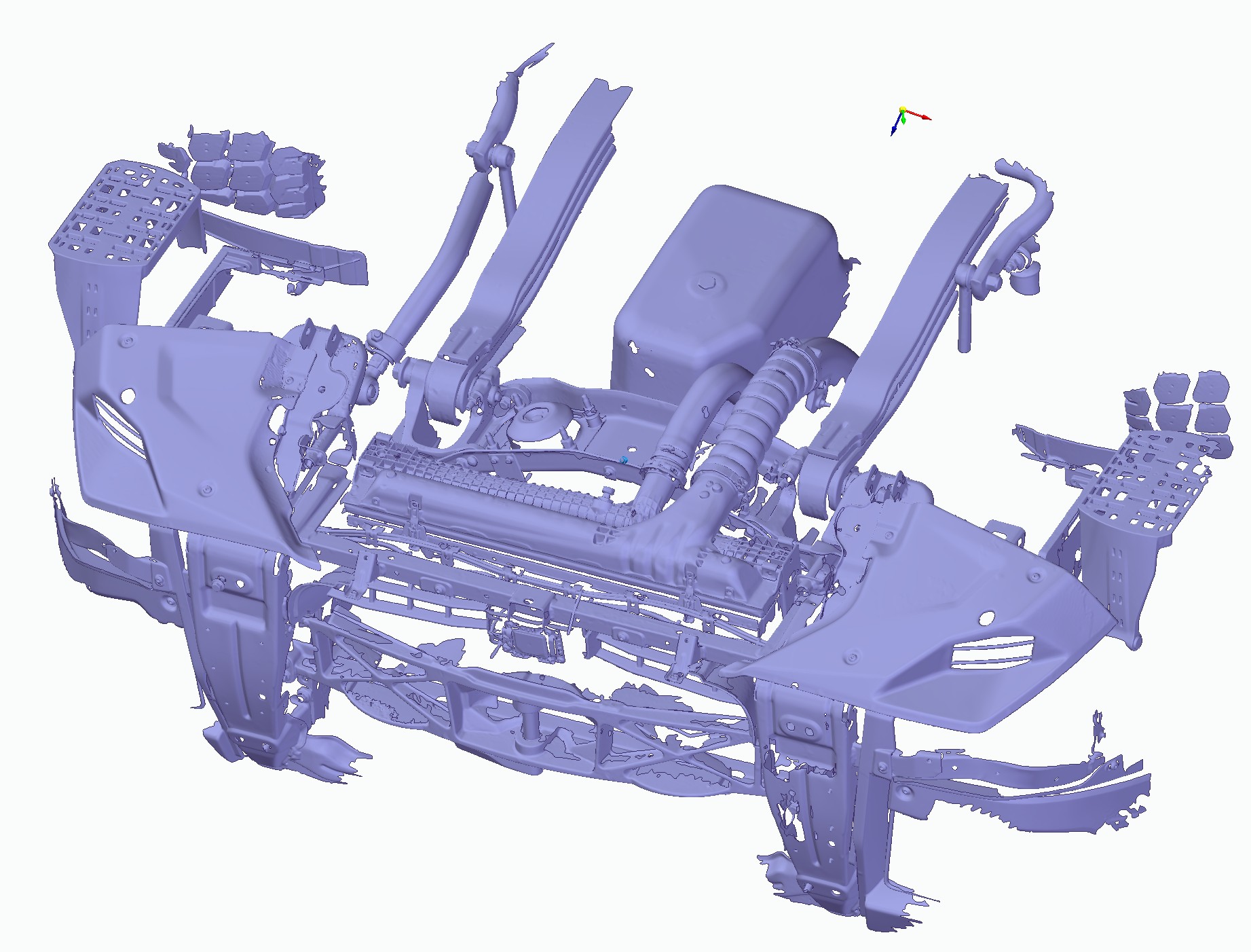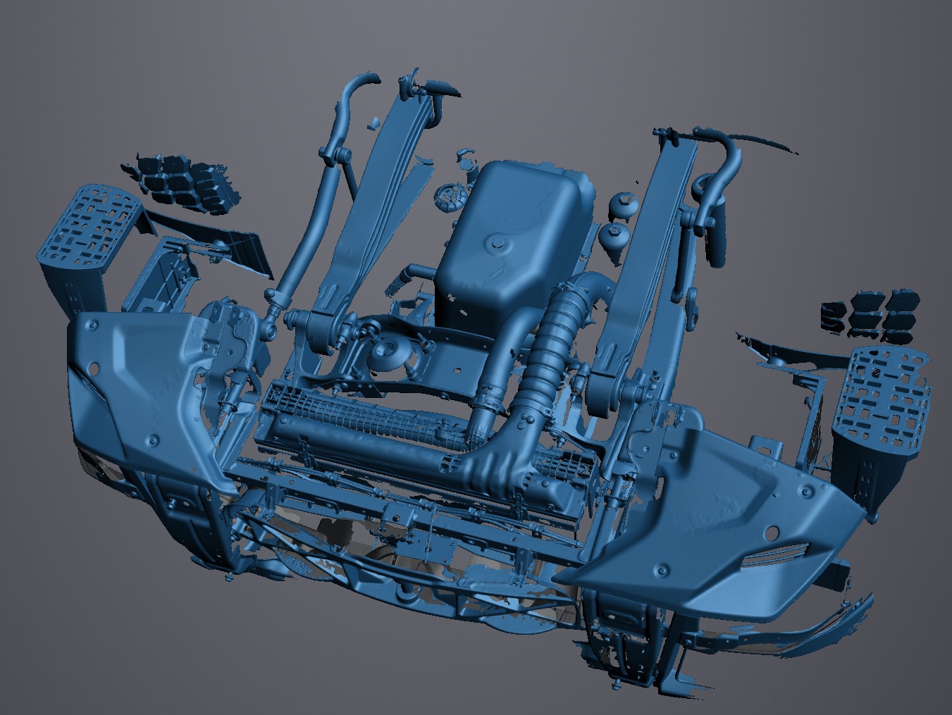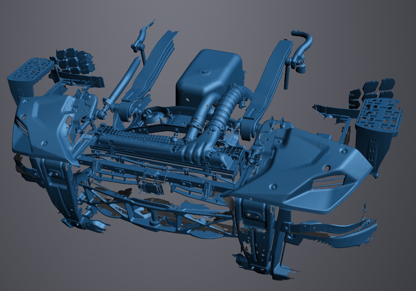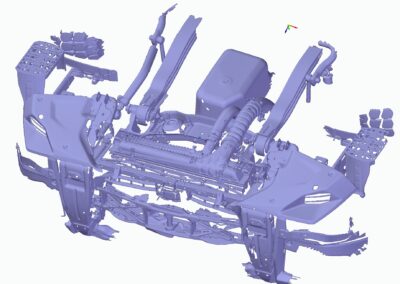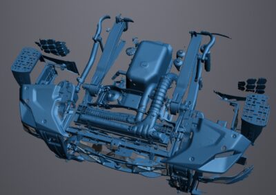 3D laser scanning and mesh optimization of front lower section of the truck subject of running order. Exported model is ready to use as design environment for ballast. Altogether it took a working day only.